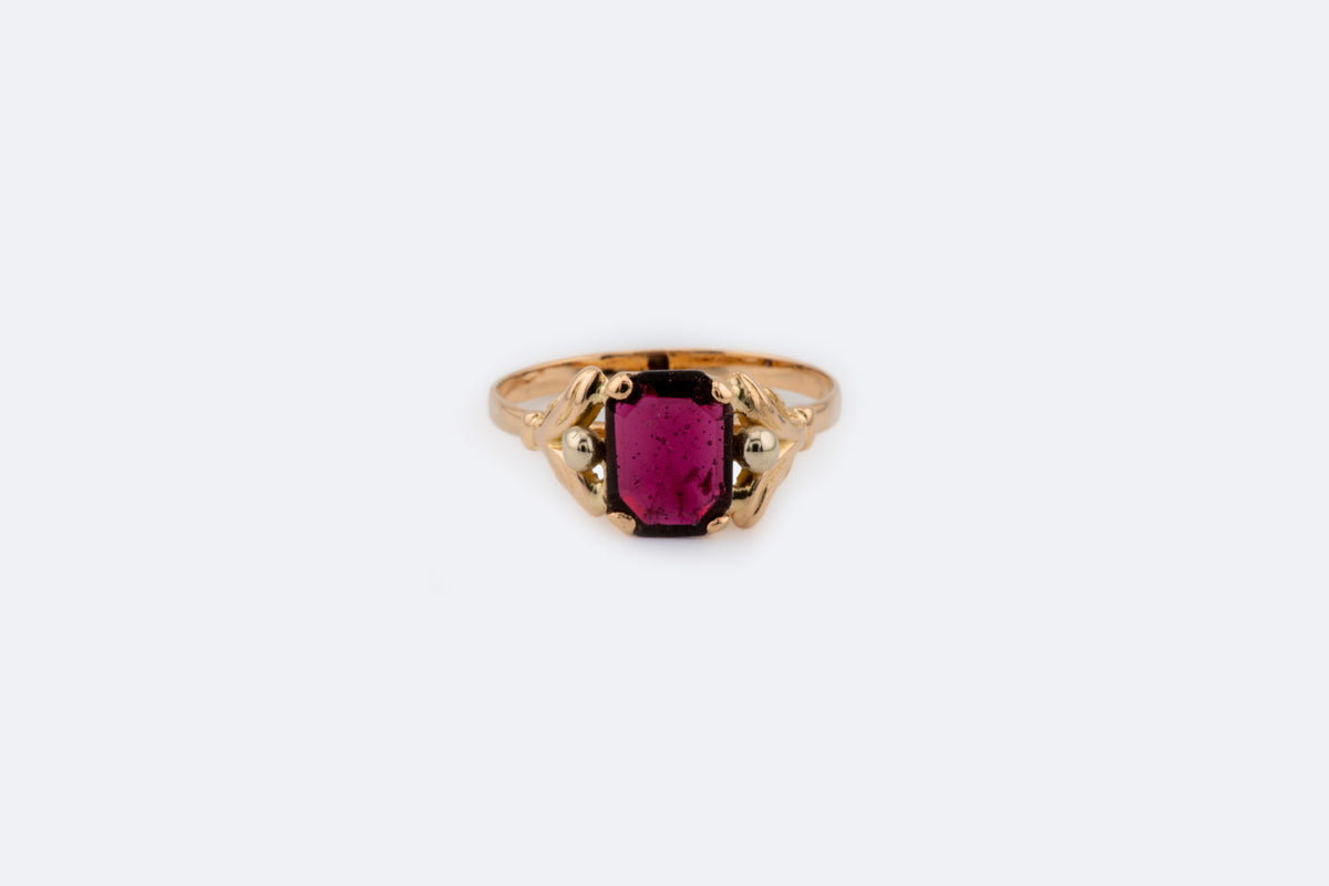 Anello in oro giallo con pietra bordeaux